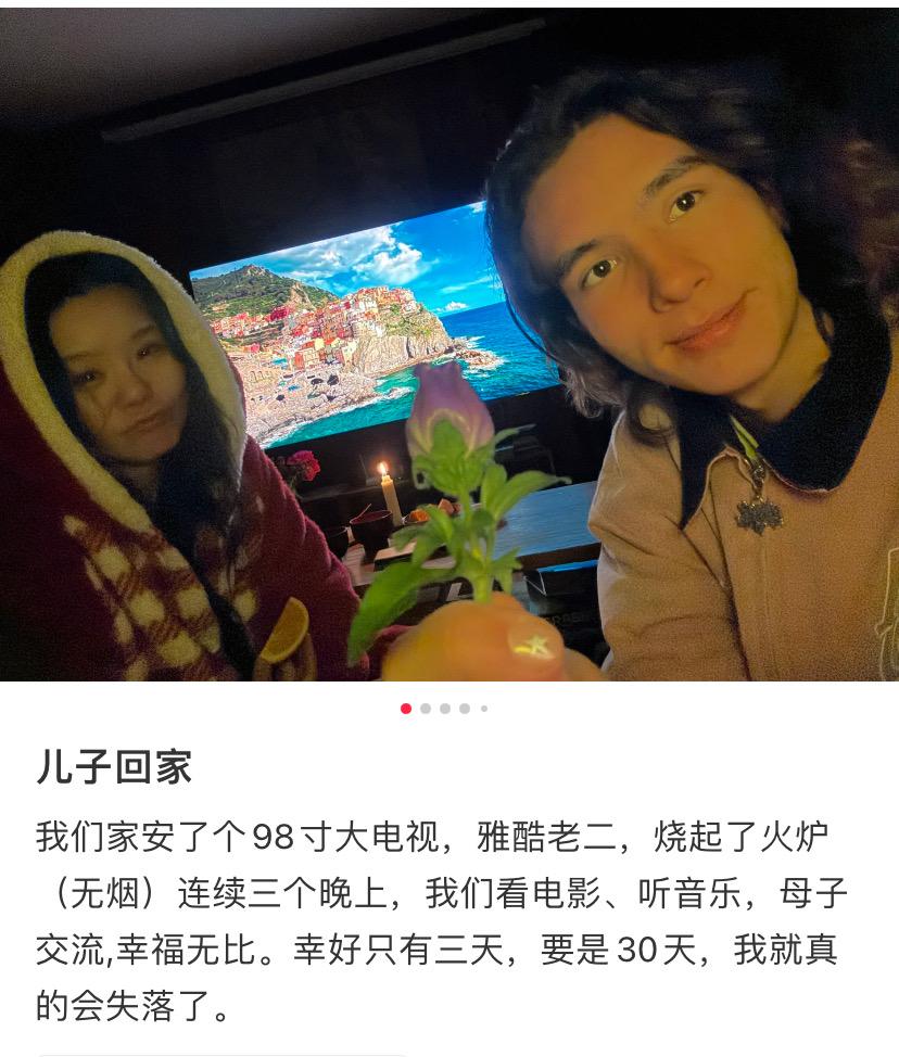 原來不知道和兒子說些什麼,現在兒子回來竟然能一起看3天電視、聊影視、聊音樂、聊生活,日子充實有趣。