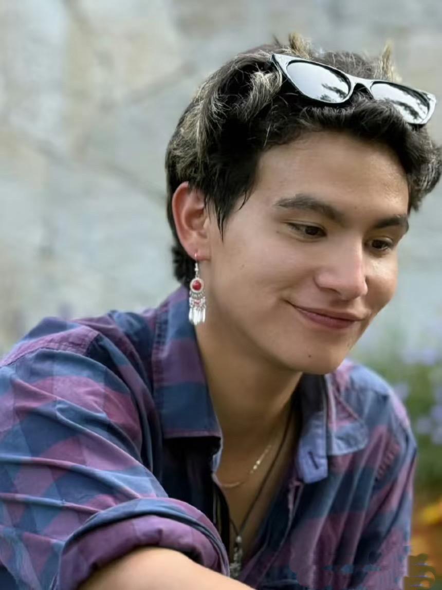穿着格子襯衫,把墨鏡推到頭頂,露出立體的鼻樑、深邃的眼眸,這簡直就是偶像劇的男主!