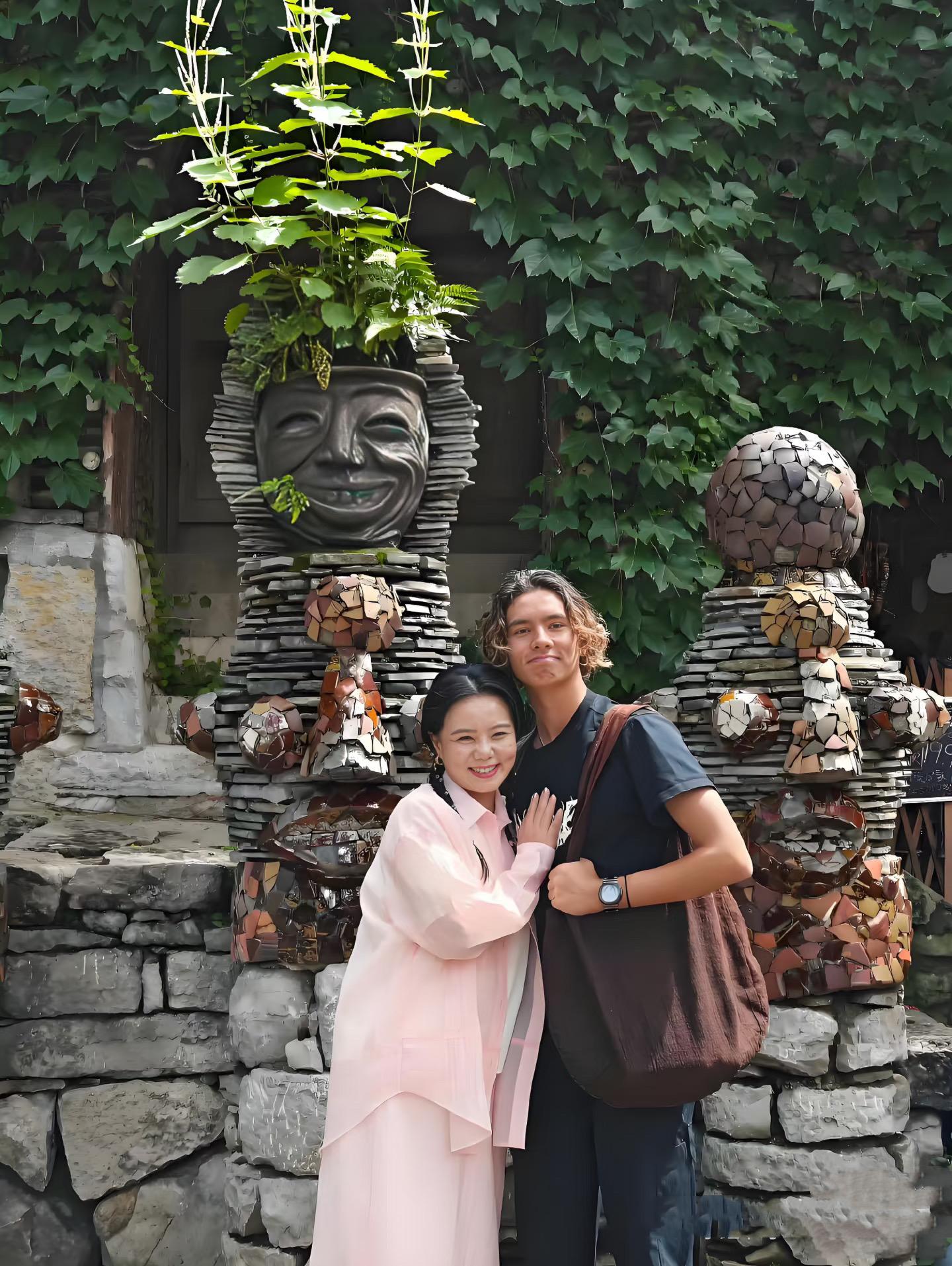 這次小兒子雅酷回來,龔琳娜非常開心。她穿着睡衣和兒子一起拍照,模樣很年輕,不少網友都感嘆龔琳娜的模樣像姐姐。