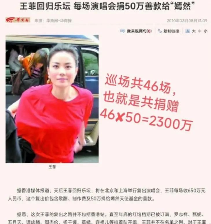 王菲是踏踏實實的給嫣然付出過,甚至在2010年迴歸樂壇的時候,她的每場演唱會都會捐50萬給“嫣然”。