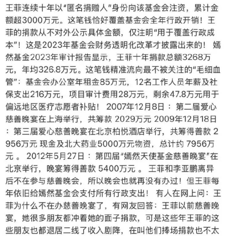 終於明白王菲爲什麼在每次捐款的時候,都會以匿名的方式向基金會注資。因爲這筆錢剛好覆蓋房租、工資、審計費用這些剛性成本。