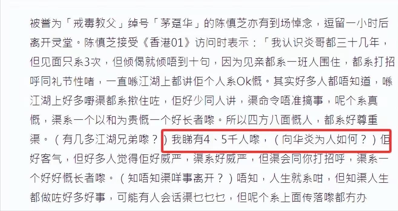 參加弔唁的,有很多江湖人士,包括曾加入14k的“雙花紅棍”陳惠敏,還有“慈雲山十三太保”陳慎芝。