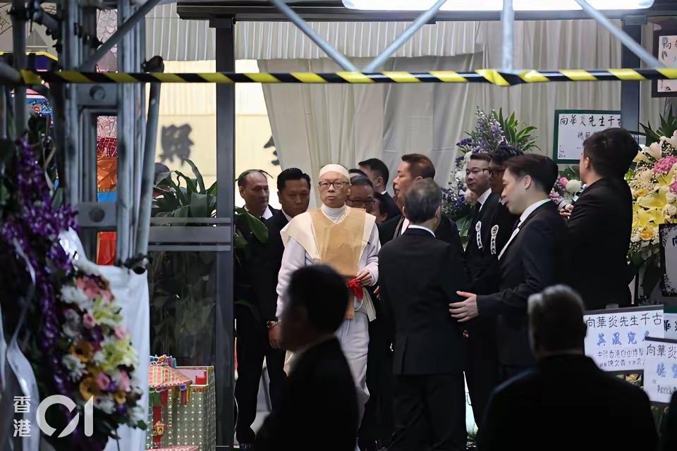 向華炎追悼會:兒子穿孝服白獅弔孝,路邊上千花圈、向太一家現身