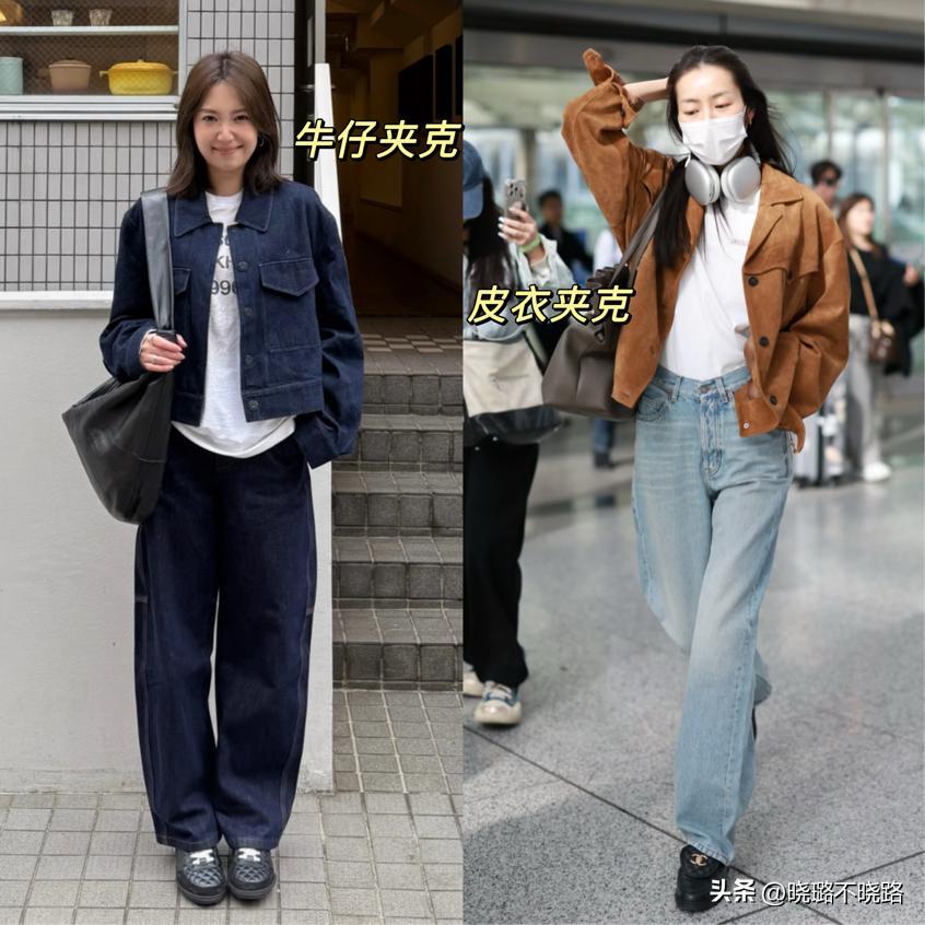 短夾克是“上短下長”穿搭裏的“酷颯擔當”,利落的版型自帶街頭氣場,是秋冬出街的絕佳選擇。牛仔短夾克是永不過時的經典款,淺藍色牛仔搭配白色高腰闊腿褲,清新又減齡,適合日常通勤和出街;黑色皮質短夾克則更具酷感,搭配黑色高腰直筒褲,一身同色系穿搭簡約又高級,輕鬆打造拽姐氣場。短夾克的版型大多偏挺括,能有效修飾上半身線條,哪怕內搭厚重的毛衣,也不會顯得臃腫,搭配高腰褲後,腰線位置一目瞭然,顯高效果立竿見影。