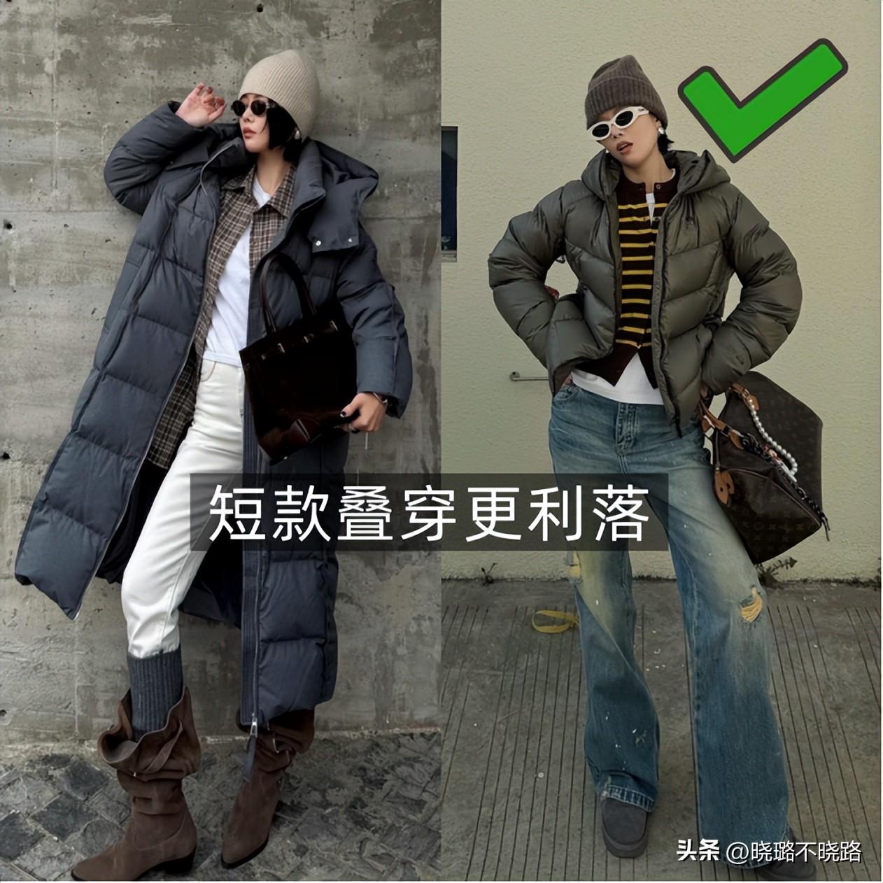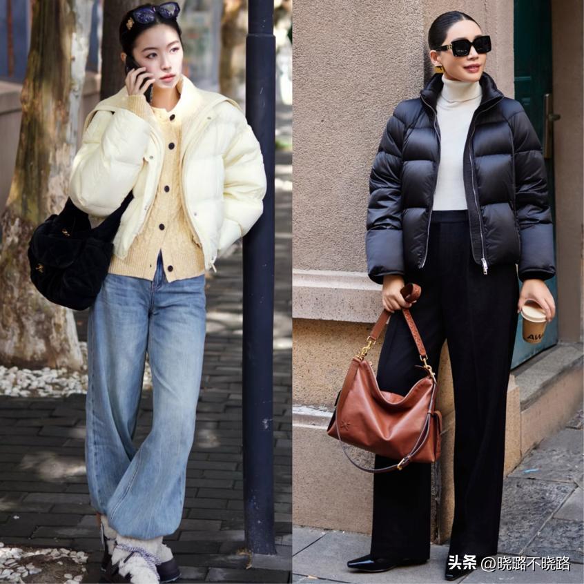 說到冬日保暖,羽絨服是必不可少的單品,但傳統長款羽絨服容易顯得臃腫,而短款羽絨服則是“上短下長”穿搭的冬日救星。短款羽絨服的長度剛好到腰線位置,蓬鬆度適中,不會像長款羽絨服那樣裹住全身,搭配高腰闊腿褲或高腰直筒褲,能有效拉長腿部線條,避免出現“矮胖”的視覺效果。選擇啞光面料的短羽絨服,比亮面面料更顯高級,也更容易搭配;顏色上優先選擇黑色、白色、米色等基礎色,百搭不挑人。內搭一件修身針織衫,既能保暖又能凸顯腰線,讓冬日穿搭告別臃腫,時髦又顯瘦。
