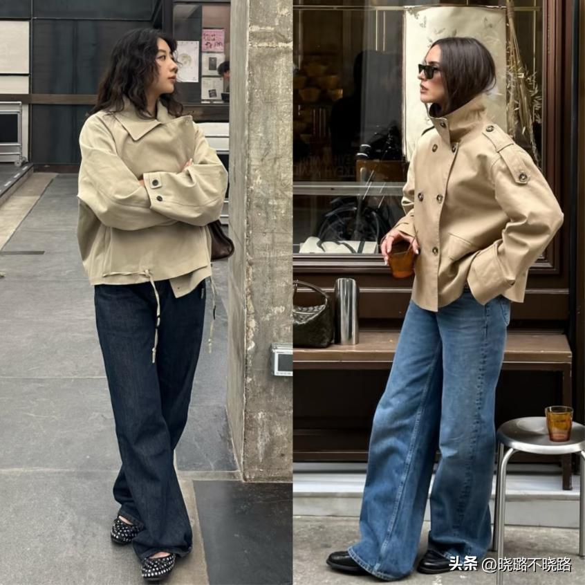 風衣的優雅氣質無需多言,但長款風衣對小個子不太友好,而短款風衣則完美解決了這個問題。短風衣的長度一般在腰部到臀部之間,版型輕薄挺括,不會像長款風衣那樣壓個子,反而能凸顯腰線,讓身形更顯利落。卡其色短風衣是秋冬的百搭款,搭配米色高腰半身裙,溫柔又復古,適合約會和下午茶;深灰色短風衣則更具通勤感,搭配黑色高腰煙管褲,幹練知性,輕鬆hold住職場場合。短風衣的面料大多防風抗皺,兼顧時尚與實用性,是秋冬穿搭的“性價比之王”。
