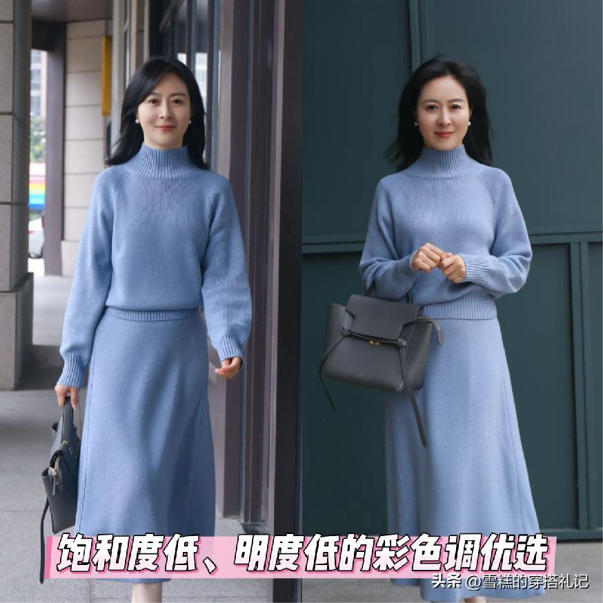 如果想要搭配一些彩色來襯托一定的減齡效果,那麼對於各位中年階段的女性來說,一定要運用飽和度和名度都比較低的顏色,這樣的彩色料再搭配起來的時候,不僅穩定度很高,而且襯托的減齡,優雅溫柔的感覺也會更加明顯,例如像藕粉色,還有就是香芋紫色以及霧霾藍都是當下中年階段的女性最適合搭配的優選。