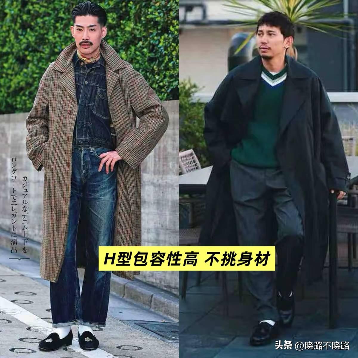 關於大衣的挑選,也是很有講究的,看日本男人就知道了,他們通常會選擇H型,對身材的包容性極高,既能隱藏瑕疵,又可以有優化頭肩比,幹練且利落。