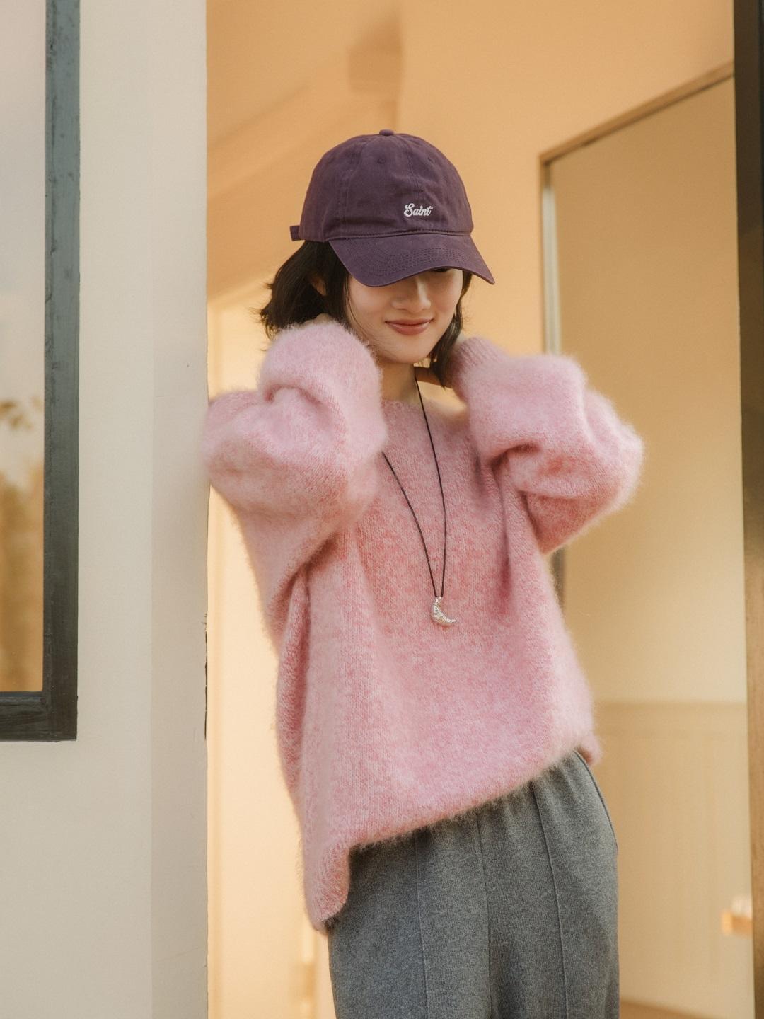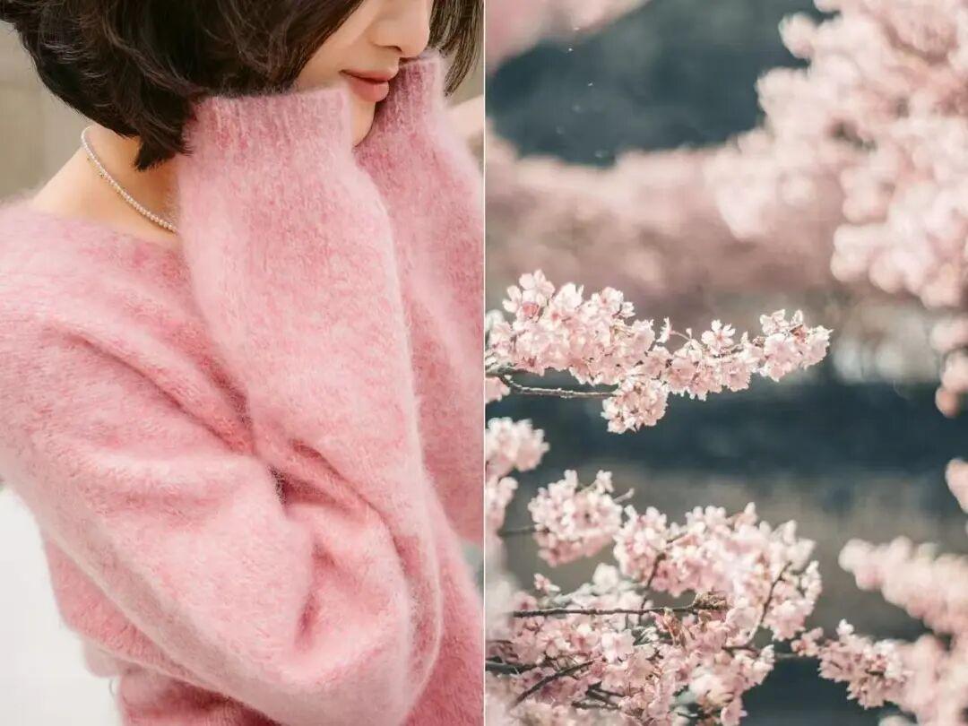 夾花粉色,靈感來自於春天的桃花和櫻花,粉色夾雜着一點白色的紗線,別小看這一點,它讓這個粉色對我們亞洲人的膚色更友好,陽光下看特別明媚。▼