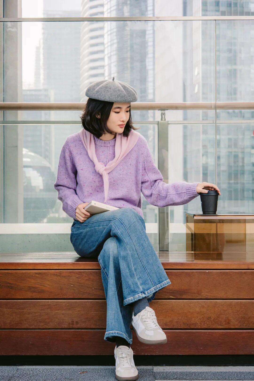 有拼色和單色可選,淺紫色像香芋冰淇淋,無論是用來提亮深色外套,還是呼應整體造型,都有很好的效果。▼