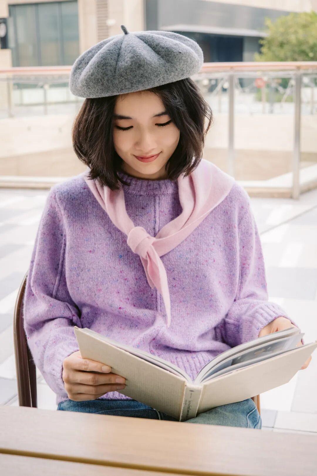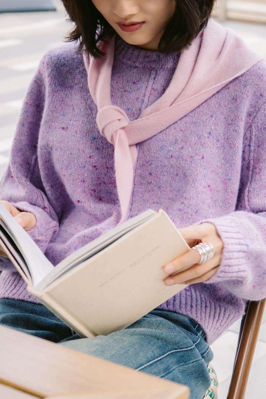 莫奈紫是之前拉毛開衫的同款紗線,好多小夥伴入手以後都說特別喜歡。(開衫上次售罄開了預售,戳下圖可以下單)▼