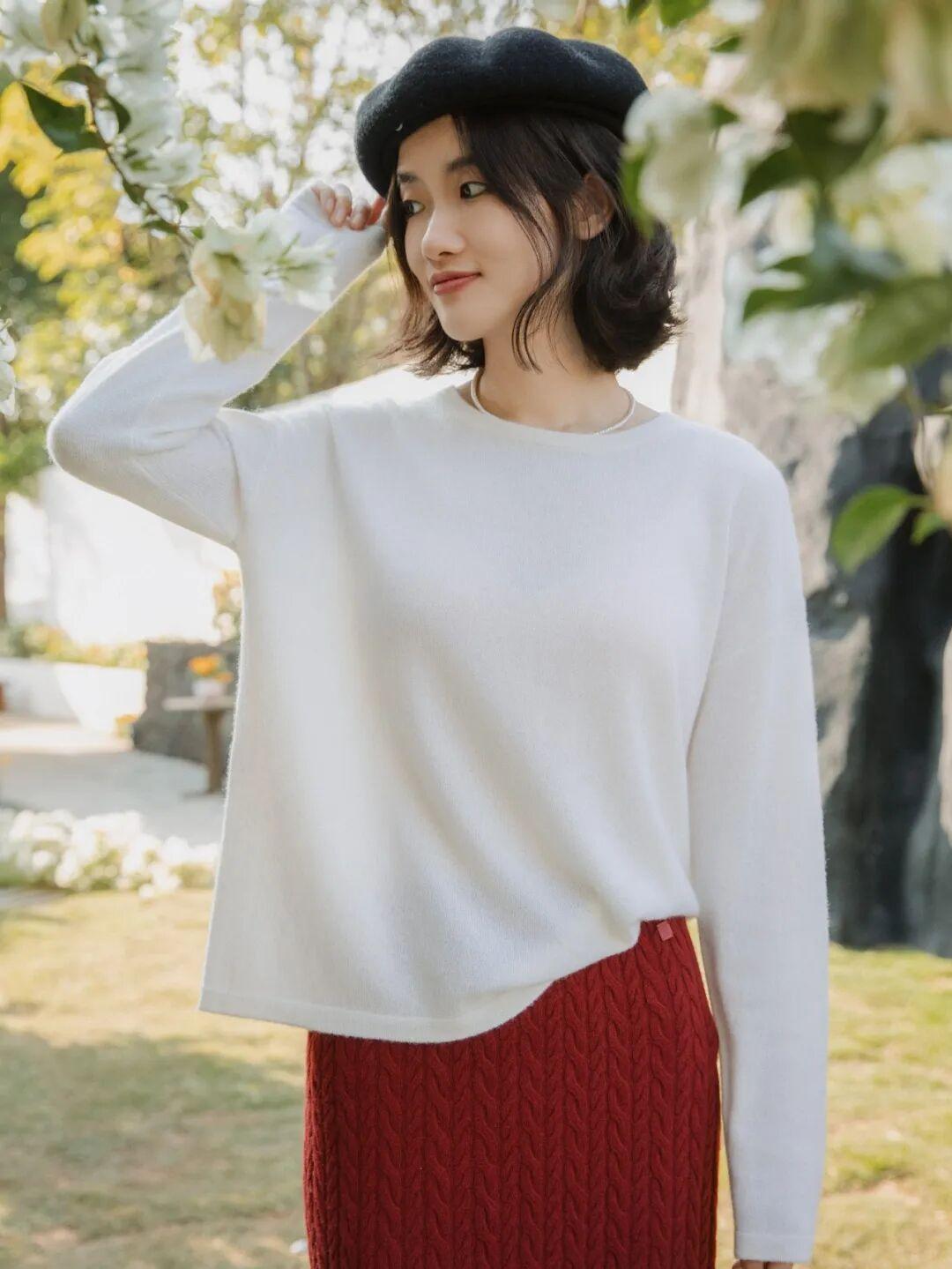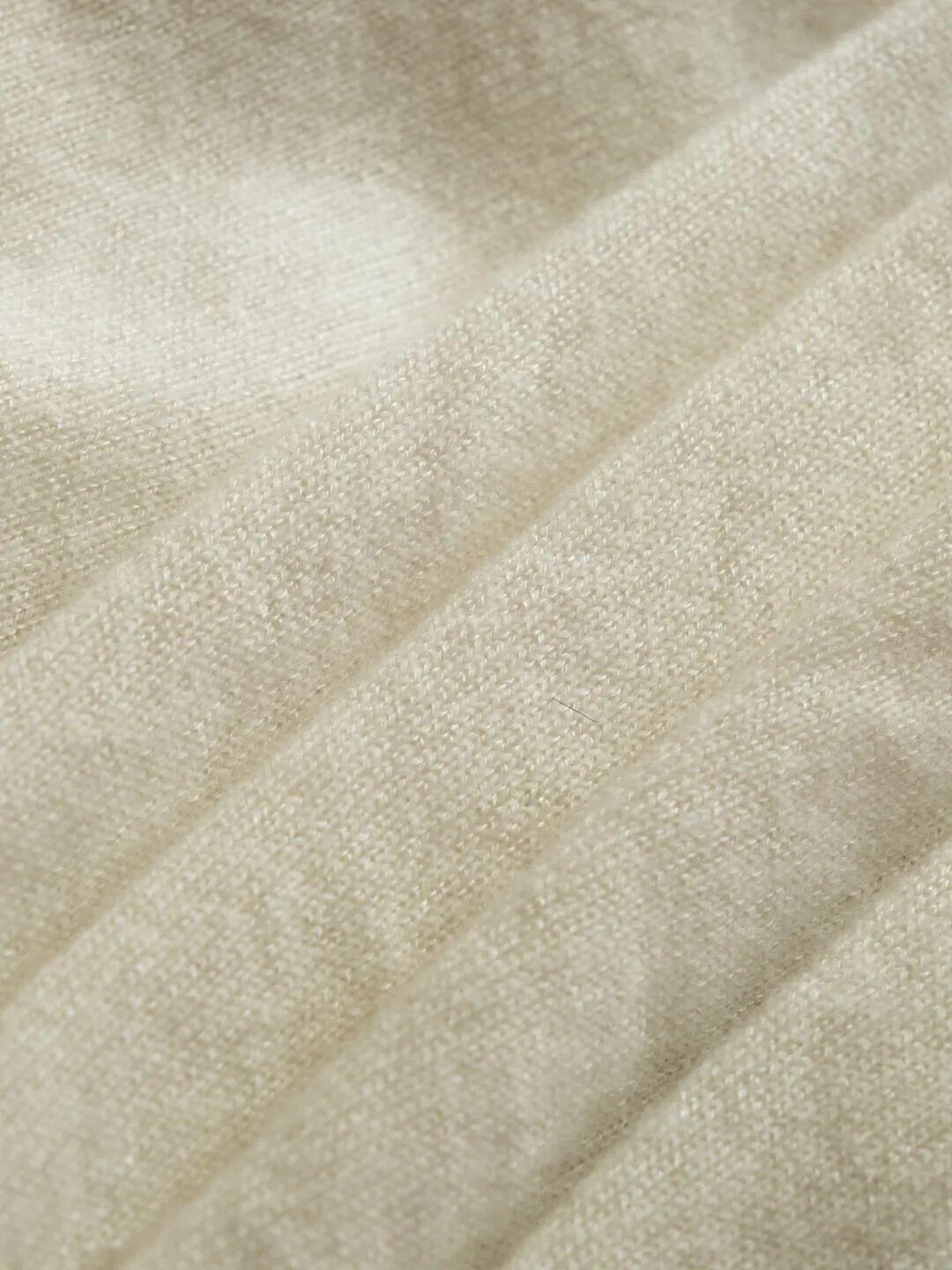 它同時擁有了真絲般的光澤順滑與羊絨獨有的軟糯親膚,配合12針高密織法,比普通羊毛羊絨更輕盈。