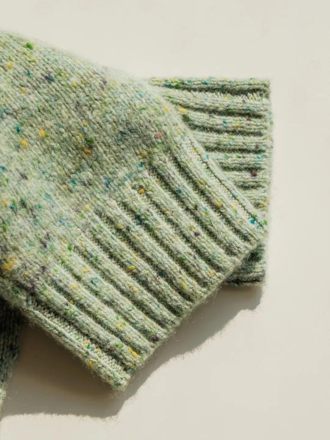 而且這款用的是100%羊絨彩點紗,表面點綴着手工製作的彩色粒子✨,工藝比普通羊絨複雜得多。