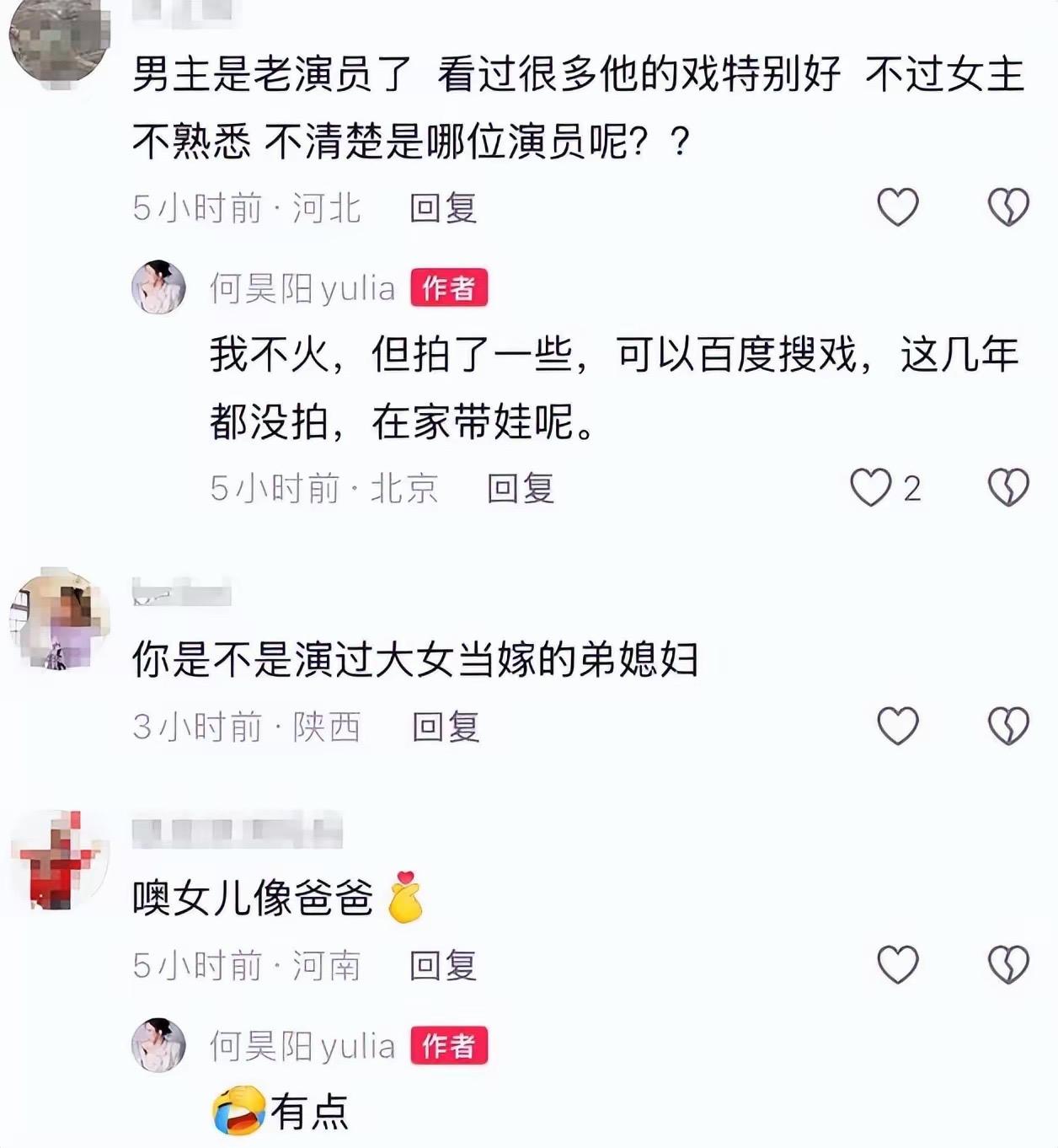 何昊陽也非常謙卑,有網友說不清楚她演過什麼。她就是直接說自己不火、這幾年一直在家帶娃。
