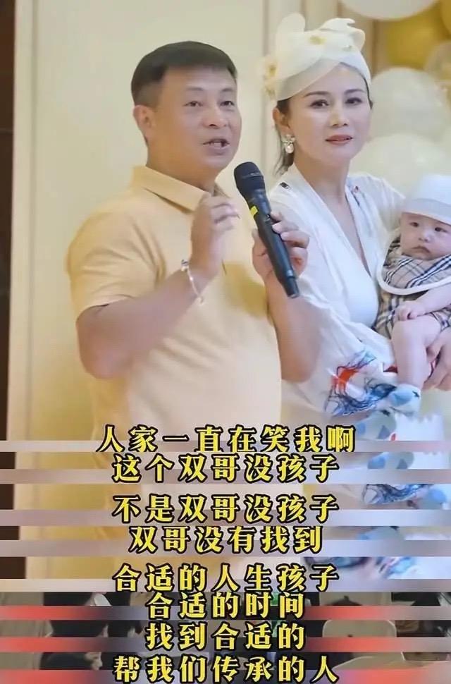 52歲李大雙爲1歲兒子慶生,封6瓶茅臺送金鎖金鐲,小22歲嬌妻穿貂