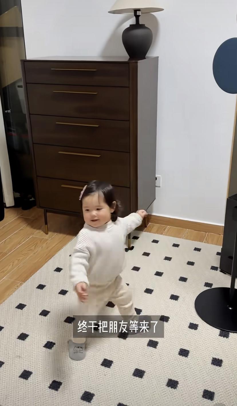 回到家等了一會,好朋友就帶着小朋友來了。小小J是個胖嘟嘟的小姑娘,非常可愛。在王冠的大別墅裏,盡情地玩耍,一點不怕生。