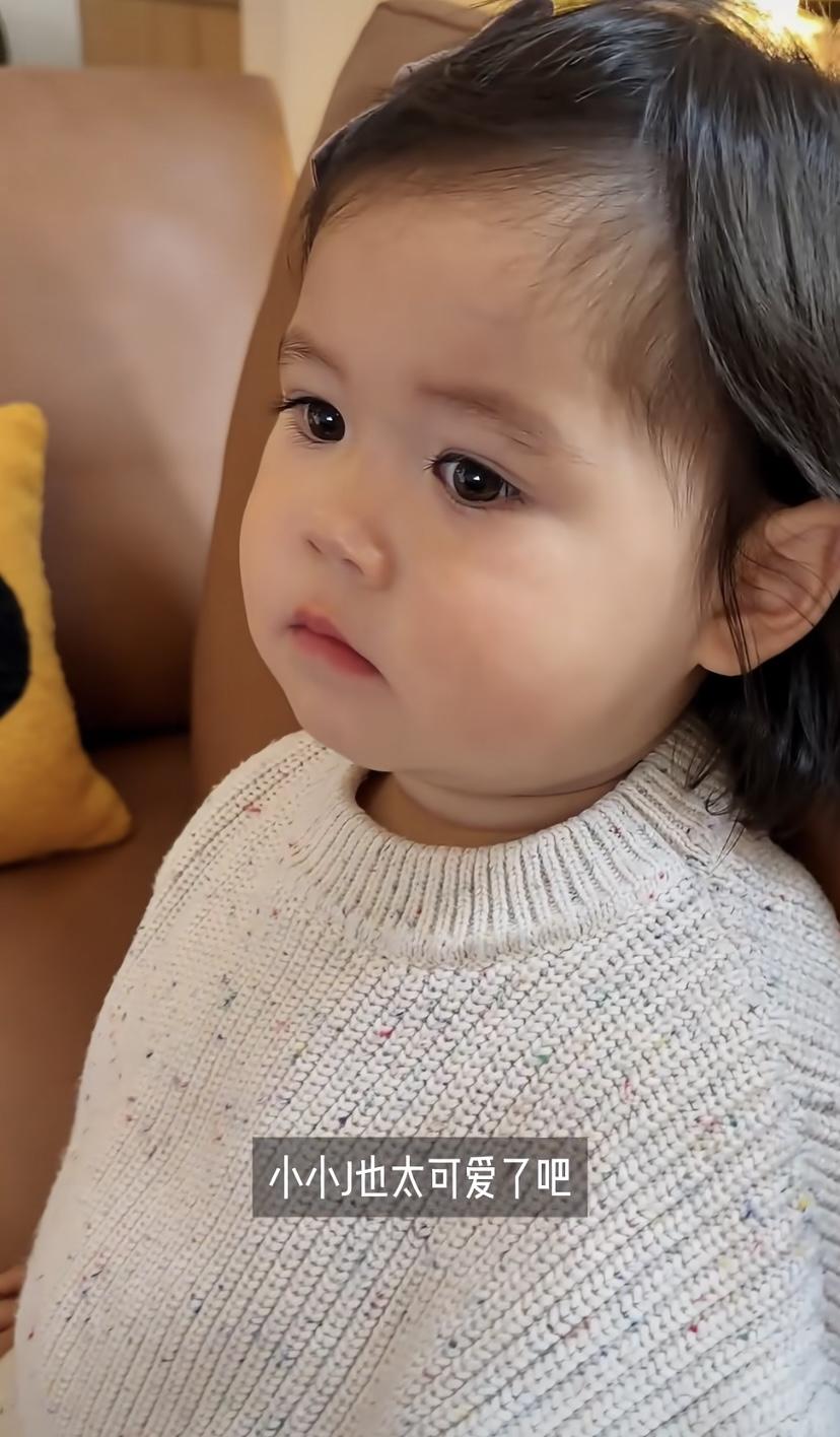 夢潔的女兒小小J皮膚白、雙眼皮、大眼睛,可可愛愛的就像混血一樣,真的太討人喜歡了。