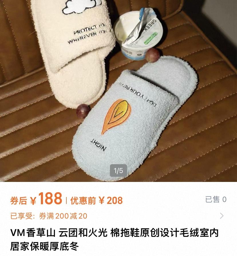 即便是她腳上踩着的拖鞋,也是兩隻不同色的款式,這樣的拖鞋毛茸茸的、看着挺普通,不過價格可不便宜。