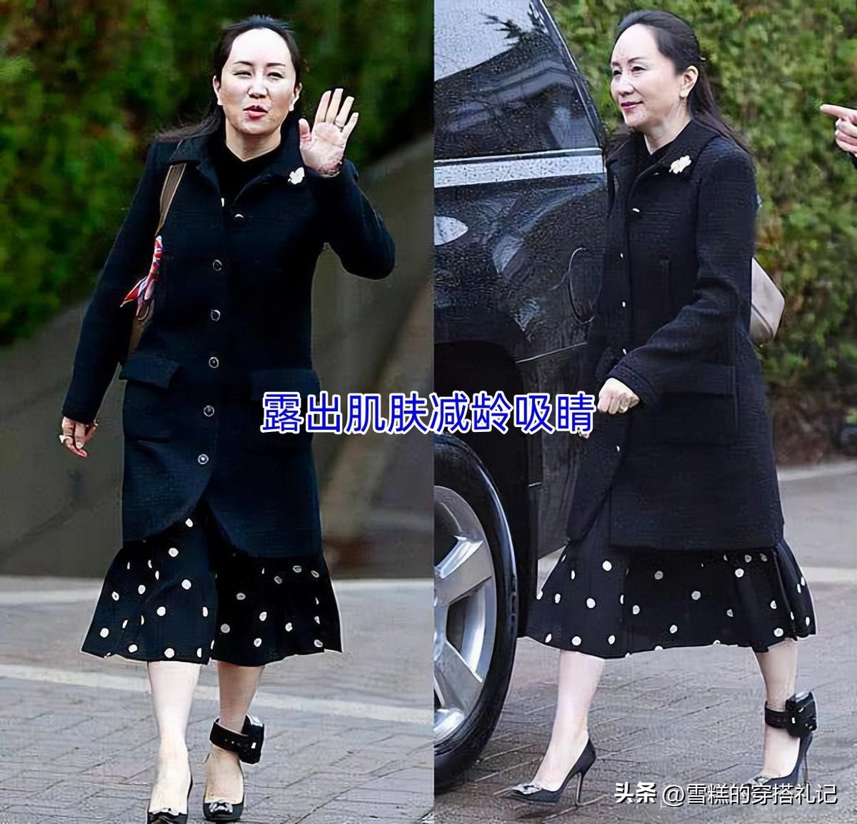 需要注意的一點是,這裏說的露出腳踝,僅僅是指露出腳踝部分的肌膚,並不是說腿部肌膚露出的越多越好。像韓國第一夫人,孟晚舟之類懂穿搭的大女人,即便是露膚面積這一塊,也能拿捏的恰到好處。