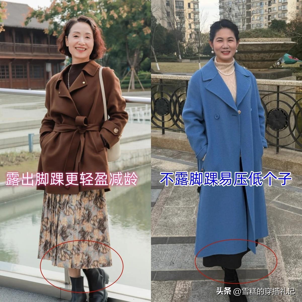 中年女人們即便是選到了正確的大衣款式,內搭選不好也很容易削弱自身氣質。像是很多姐妹很喜歡長+短的方式,利用過膝款大衣配合短裙,以便於露出精緻雙腿,殊不知正是這樣讓整體多了一絲“風塵氣”。正確的做法是和韓國第一夫人學習,配上更得體的過膝長裙,在大衣的襯托下微微露出一些裙襬,既能更好達到遮肉效果,也顯得更得體與大方,哪怕是出席比較正式嚴肅的場合也非常合適。