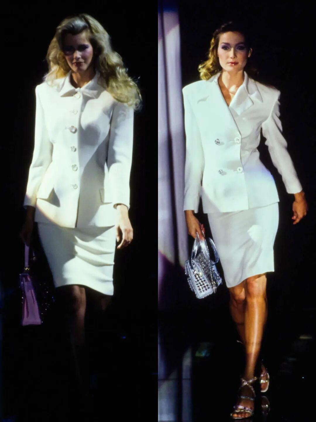 其實談判什麼的她都不太記得了,說起那次穿的衣服卻印象深刻:一套Gianni Versace範思哲的白色套裝。
