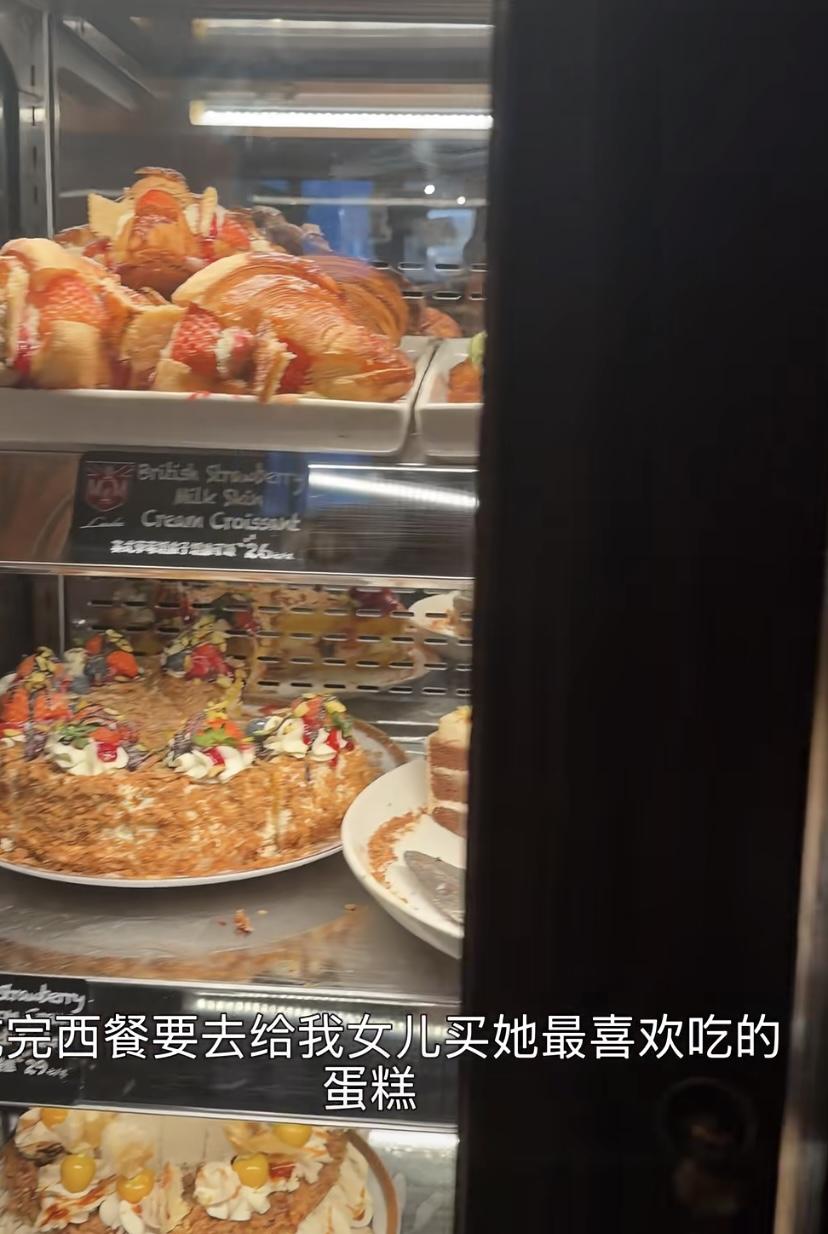 夫妻倆喫完西餐,又給女兒買了她喜歡的小蛋糕。小蛋餃5歲了,已經開始上課了,夫妻倆看來也是雞娃式教育。