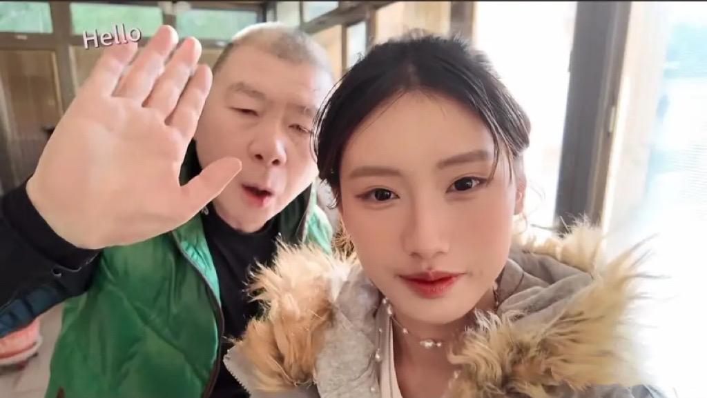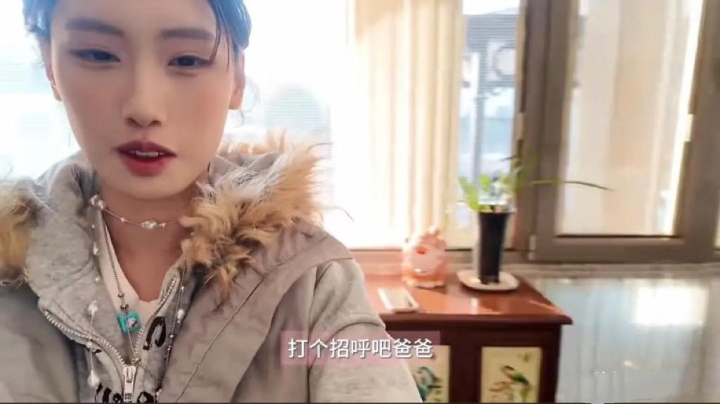 錄視頻的過程中,馮小剛剛好起牀了。被女兒拉過來對着鏡頭打招呼,馮小剛穿一件黑色毛衣、綠色馬甲,頭髮都花白了,私下裏是個很慈祥的老父親。