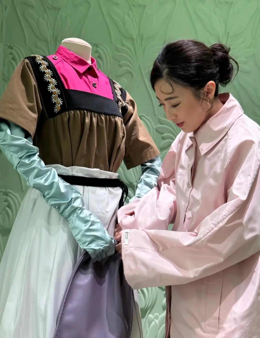 萬寶寶在之前的活動中,也穿了這件粉色襯衫,雖然和甘比是同款,但是她的表現力更強一些。