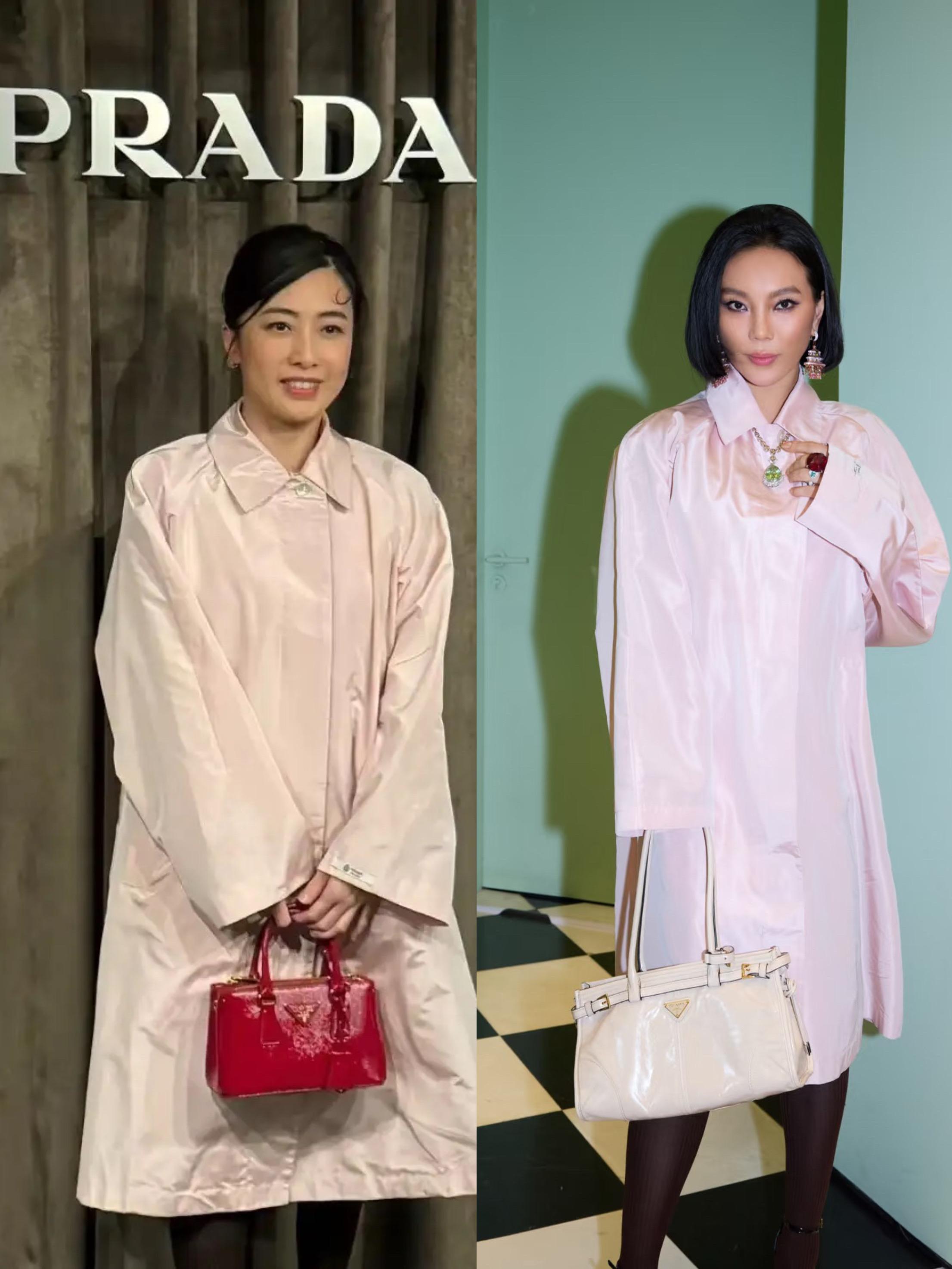 接下來在普拉達的兩場活動中,甘比和萬寶寶穿了同款衣服,兩人的氣質差別卻很大。