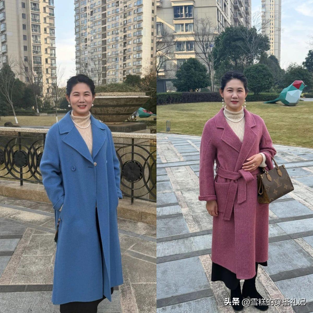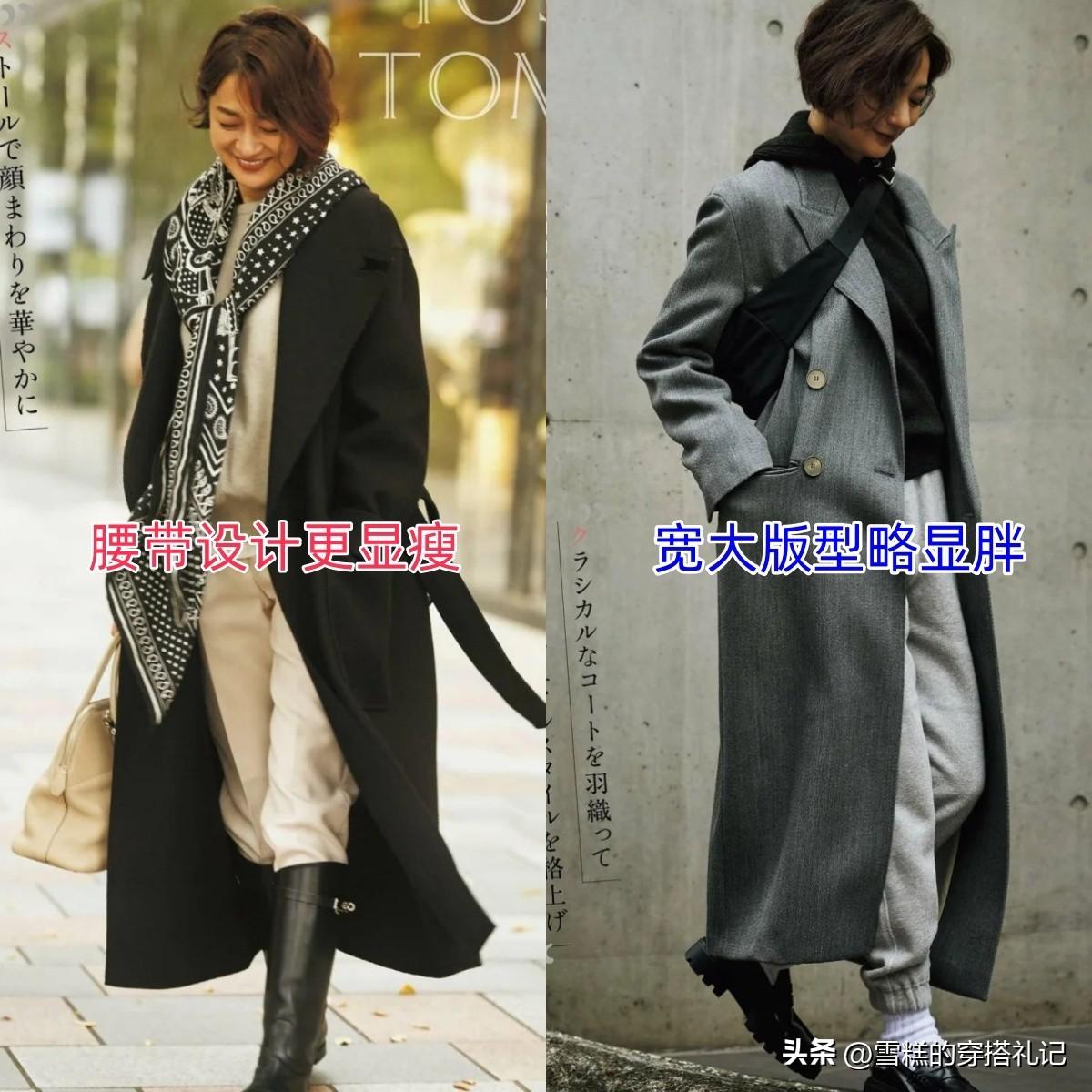 中年女人選擇大衣,首先就需要根據身材來選版型。隨着年齡的增加,咱們不可避免的會產生一些贅肉堆積的現象,尤其是在肚子和大腿的位置,靠着這兩個問題選款式,就需要額外增加收腰的元素,可以是在腰線位置製造出褶皺的收束設計,也可以額外增加腰帶,穿着時系起來,形成一個“X”的視覺收縮效果,幫助從上到下顯瘦顯氣質。