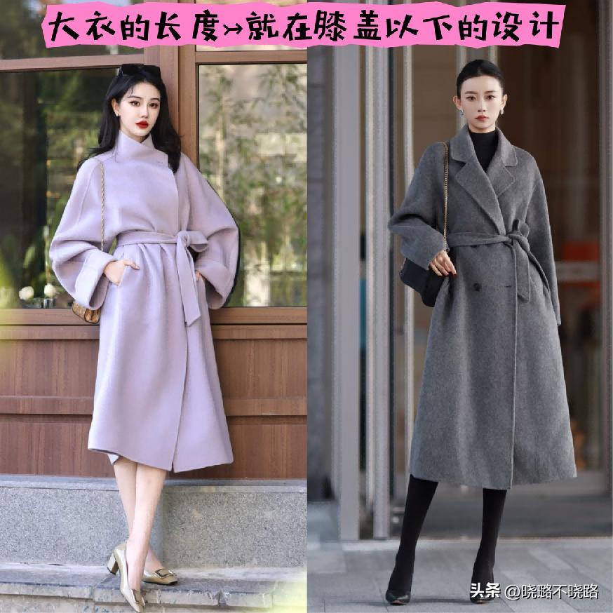 但如果是毛呢或者是羊毛材質的大衣,那麼我們的長度就可以控制在膝蓋以下的設計,露出來一部分的小腿部位或者是膝蓋,能夠將整體的比例優勢給體現到最好。而且像大衣這樣的單品系列,它絕對是屬於長款的設計,要比短款的更能夠凸顯高級和利落感的氣質走向。
