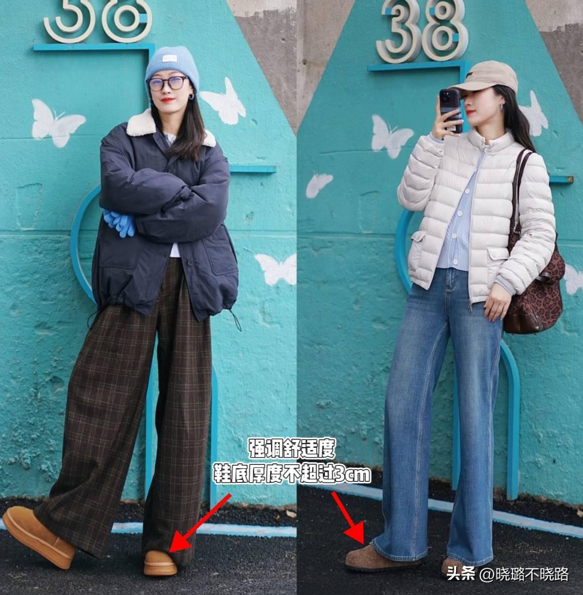 不起眼的鞋子,在穿搭當中,卻能起到極大的影響力,冬天穿羽絨服和闊腿褲,要避免太笨重的鞋型,否則褲腿堆在鞋面上,就很容易壓身高、顯邋遢。