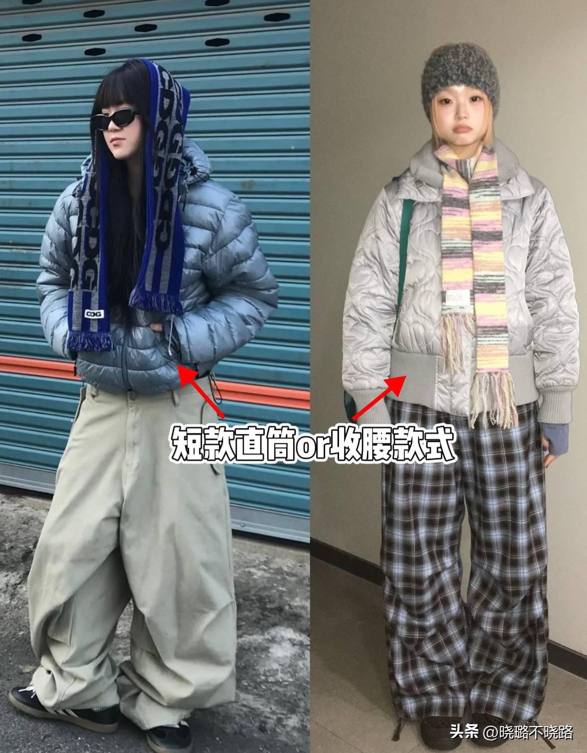 在具體搭配羽絨服和闊腿褲的時候,單品類型的挑選,堪稱至關重要的步驟,想要穿出黃金比,不妨嘗試一下“上短下長”法。