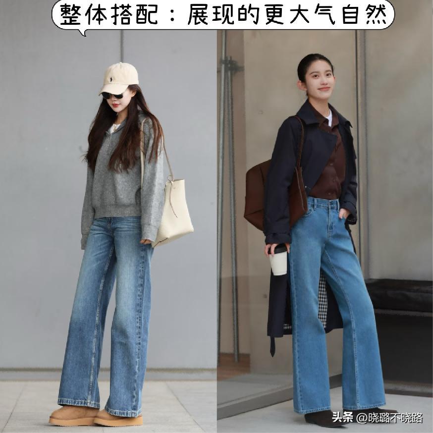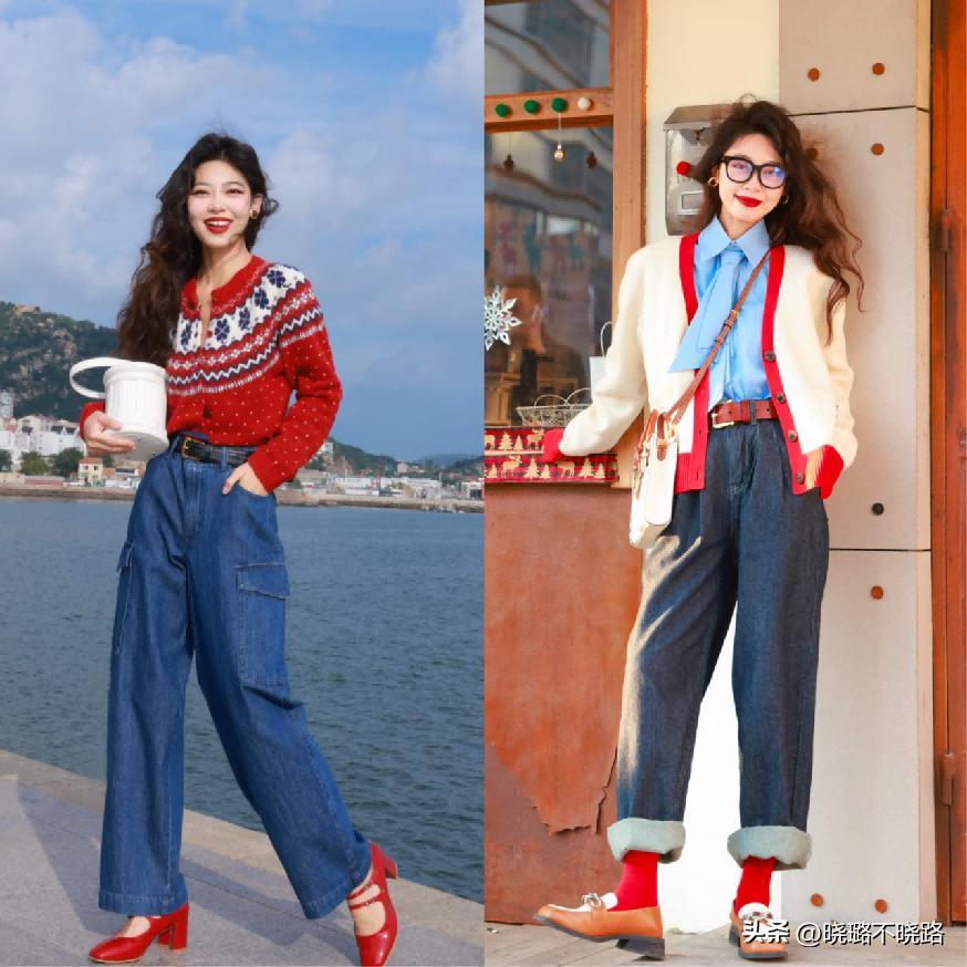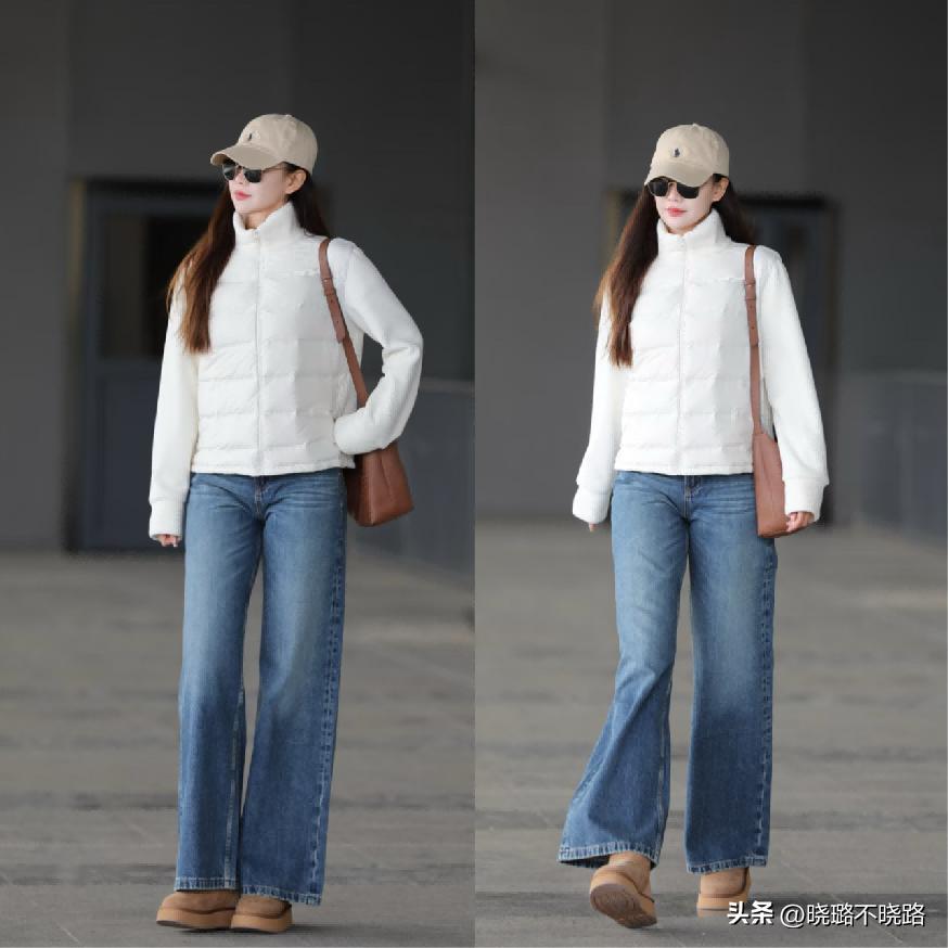 這樣的牛仔褲是屬於很日常的搭配,所以其實對於很多年輕的女性而言,大家可以運用一些彩色調的減齡又時髦的單品,例如像彩色調的大衣,又或者是羽絨服,不僅舒適減齡又能夠體現視覺上的亮點。