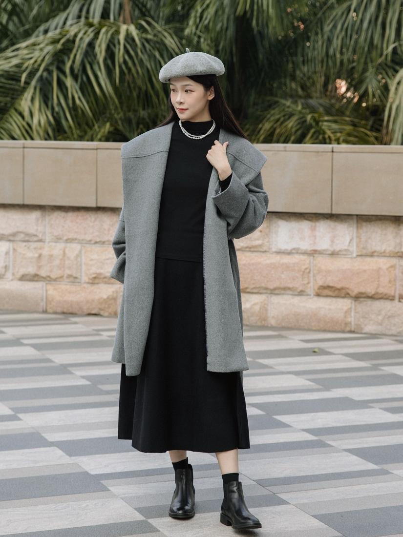 我們之前也說過,冬天穿的裙子,第一原則是“垂墜”,這樣纔不會讓厚重的冬裝顯得更臃腫。