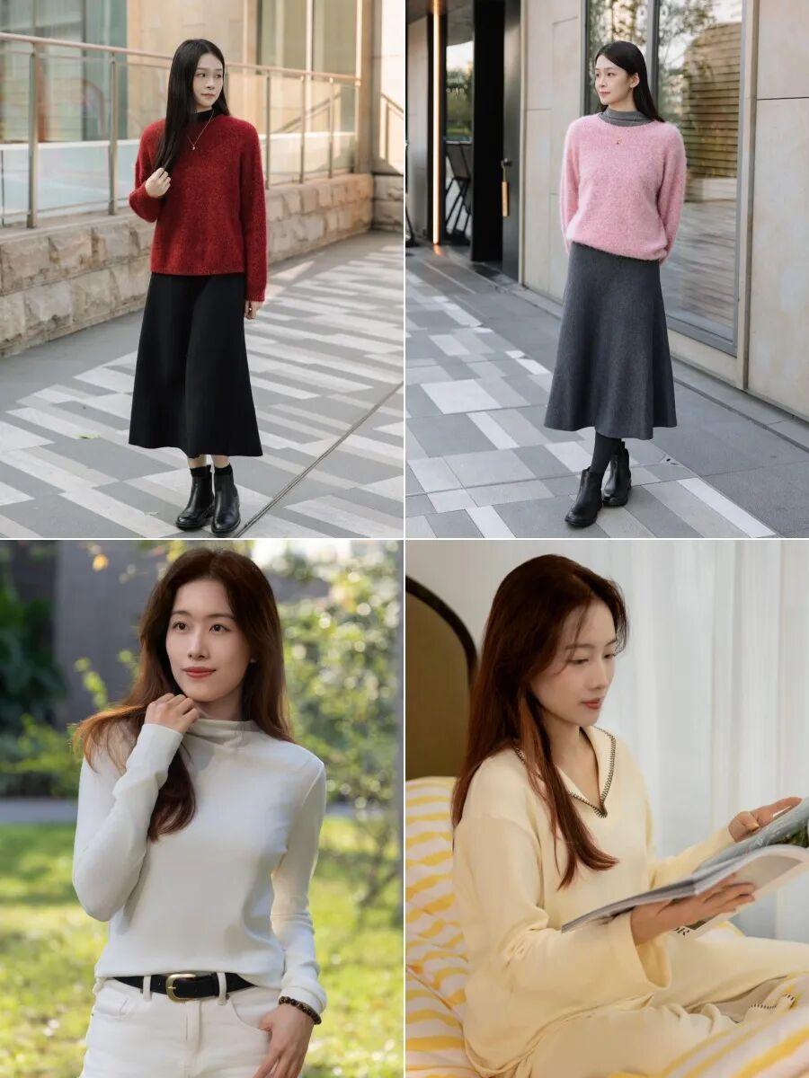 這次特意選了三件實穿度超高的單品:軟糯貼膚的打底衫、溫柔顯瘦的羊毛半身裙,還有一套暖呼呼的奶酪絨居家服。