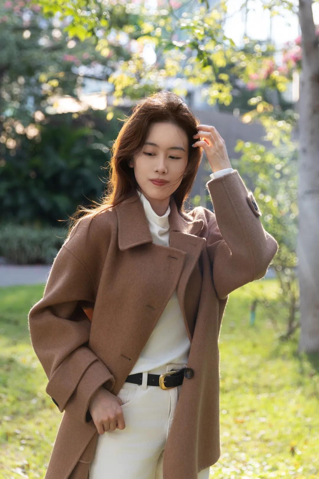 尤其今年棕色系外套特別多,內搭一件白色打底,露出的領子能瞬間提亮膚色,打破沉悶感。▼