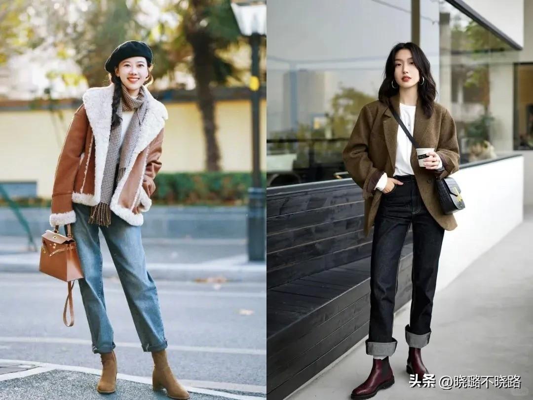 >>>>鞋褲結合:九分煙管褲+短靴的組合,可以說是小個子們最顯高的穿法之一。褲裝與靴子之間露出一點點肌膚,靴子高度保持在3–5cm,腿長就會直接被“物理延長”。