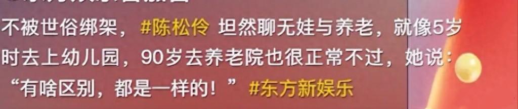 55歲的陳松伶,首次談到無娃養老。就像5歲上幼兒園一樣,90歲去養老院在正常不過。她說“有啥區別,都是一樣的”。