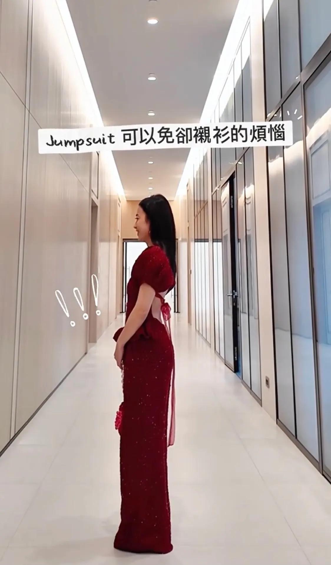 馬上就是春節了,這樣一件紅色露背連體褲,穿起來驚豔又大方,實在太高級了。