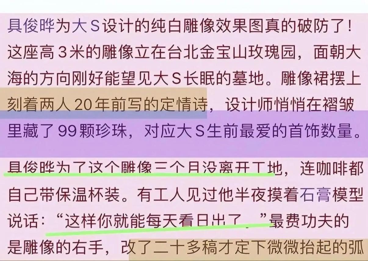 之前有人質疑具俊曄作秀,說給大S的雕像一直沒有動靜。其實具俊曄早就給大S做好了雕像,在她週年祭日的時候就會揭幕。