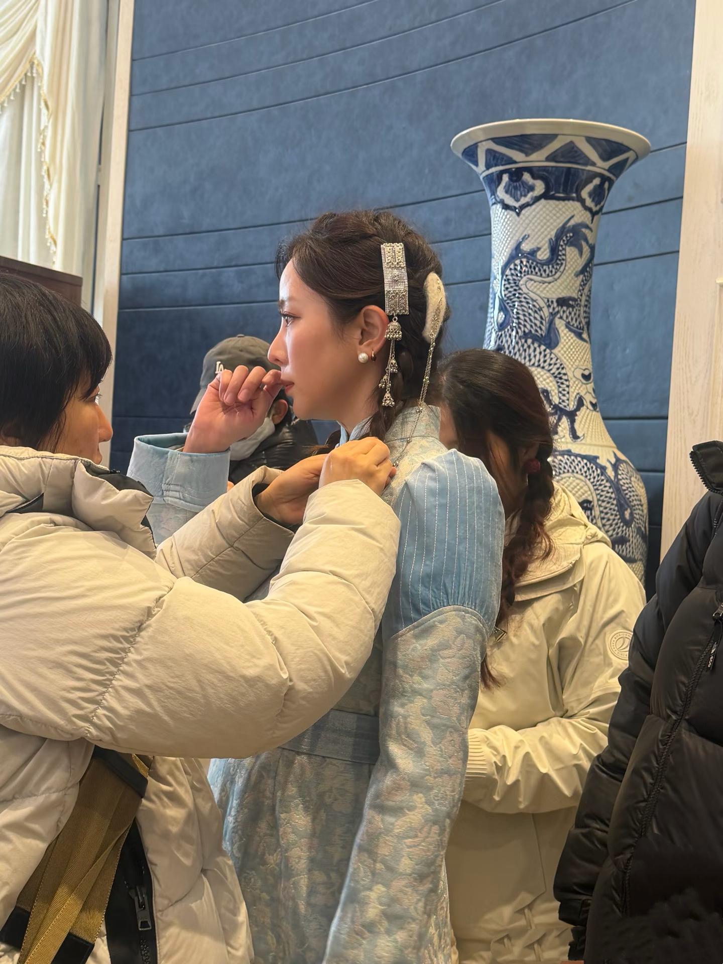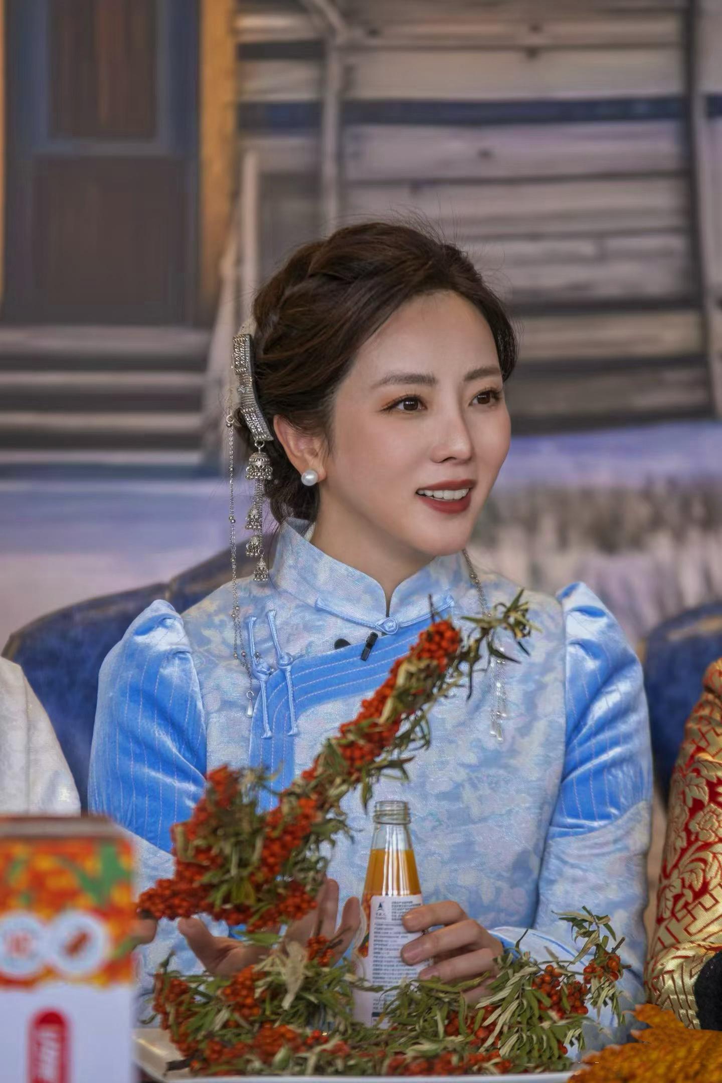 李思思又有新行動!穿淺藍色蒙古袍直播帶貨,比做主持人時候還美