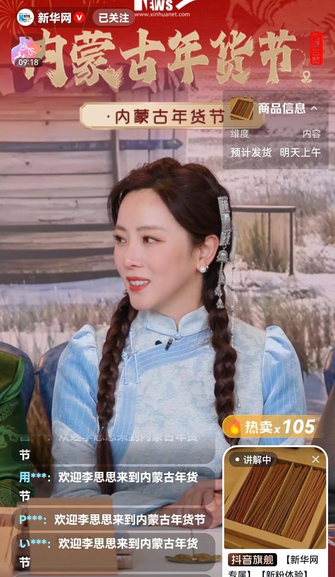1月29日,李思思又有新動作。她參加了新華網“內蒙古尋真溯源之旅”年貨節直播。這是個人轉型、平臺合作、地域推廣與文化傳播多重因素疊加的結果。