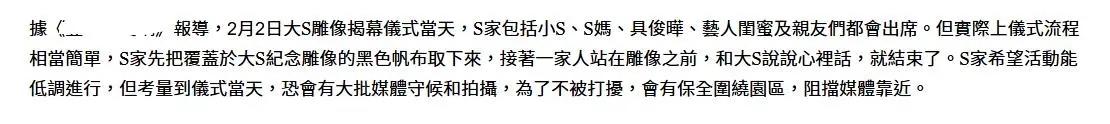 雕像揭幕儀式當天的行動流程也被曝光,在舉行揭幕儀式之前,大家會一起前往大S的墓地祭拜。