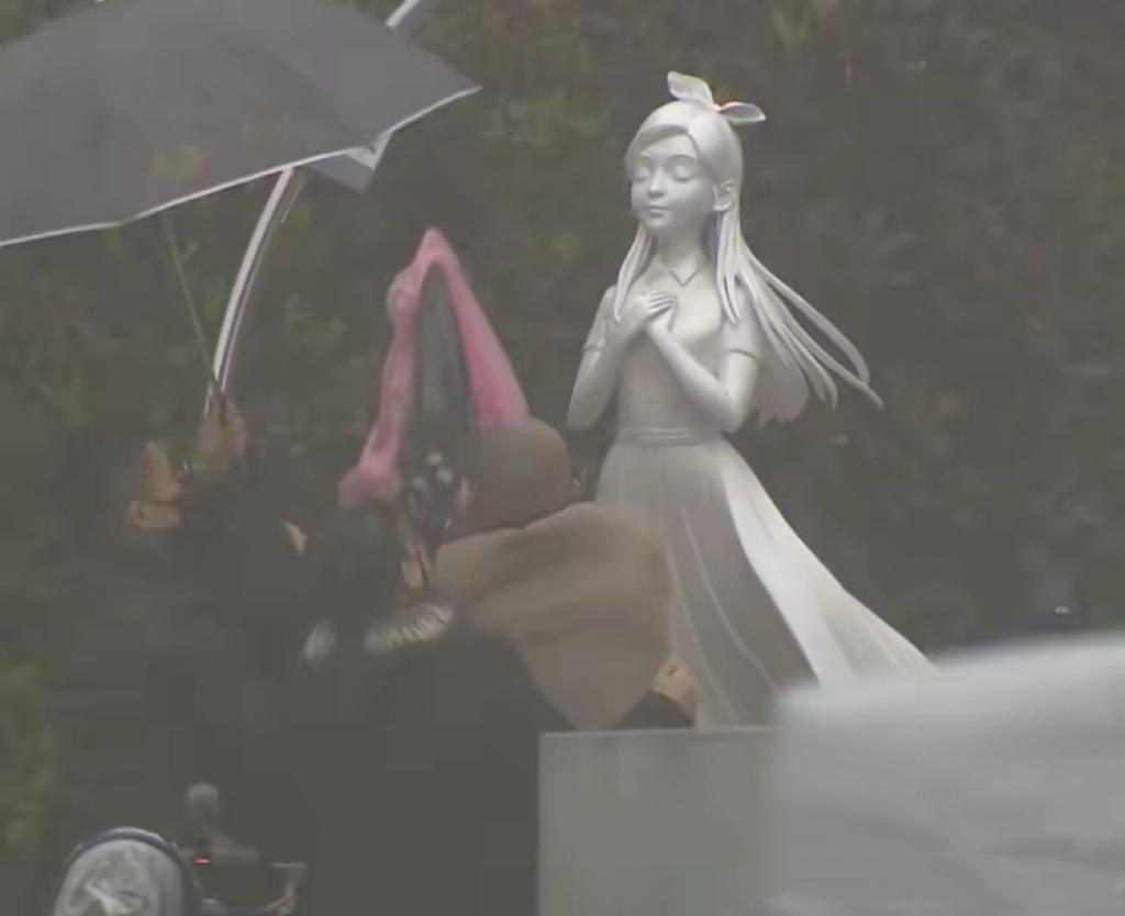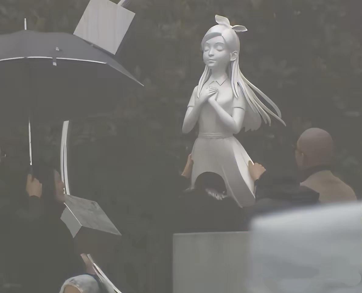 具俊曄選擇粉色包裹是對亡妻喜好的尊重和紀念,更契合了雕像中“還原她少女本真”的核心思想。