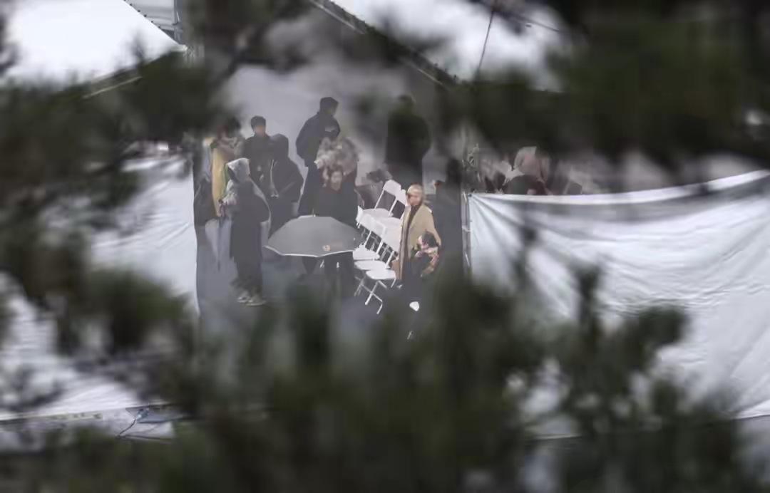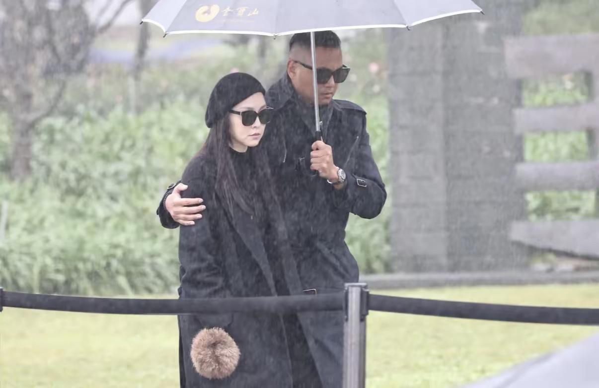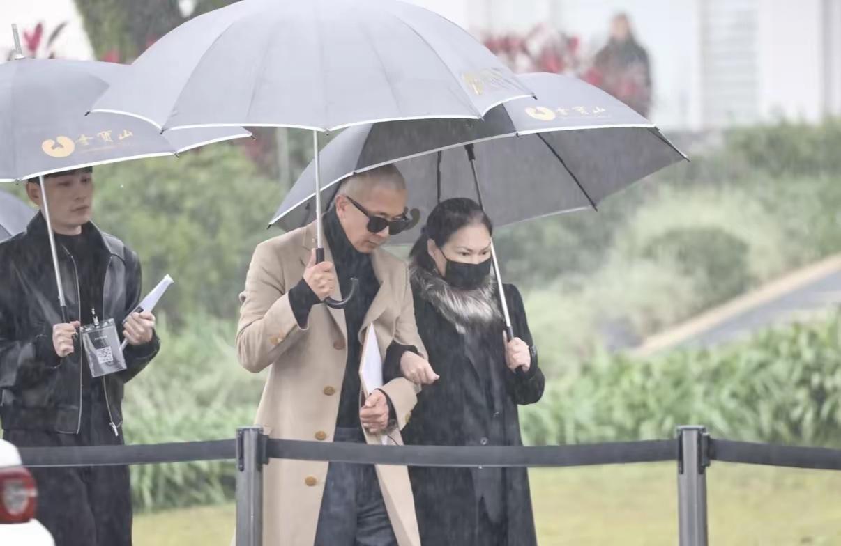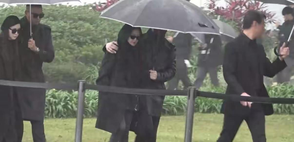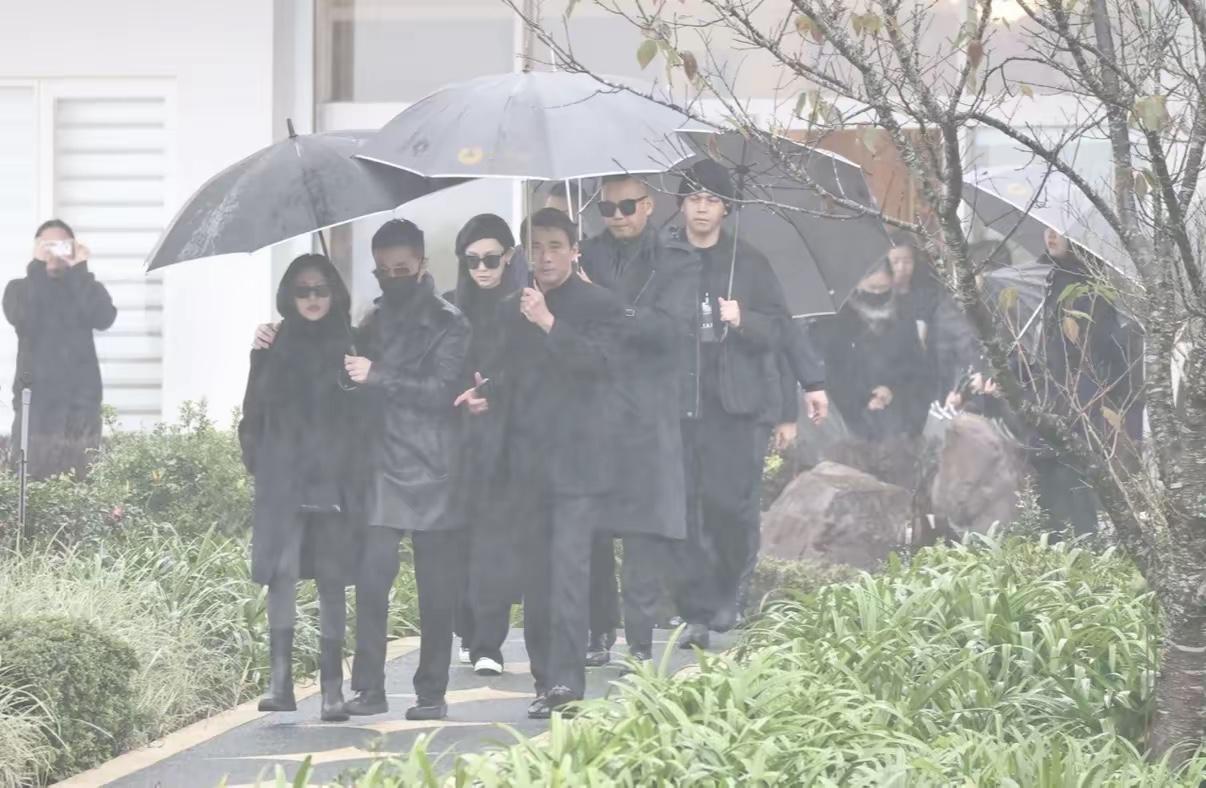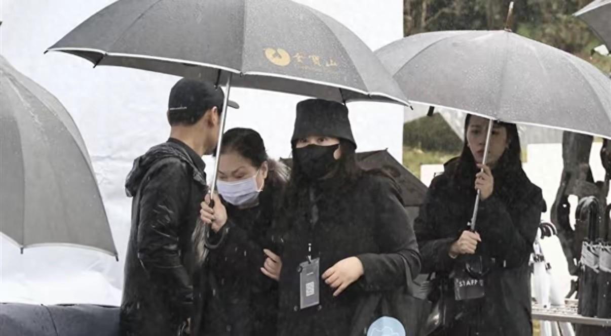 一家人早早地就趕到了現場,在金寶山有工作人員維持秩序,不允許媒體和網友進入。有工作人員幫S媽撐着傘,看起來她神情悲傷、滿臉憔悴。