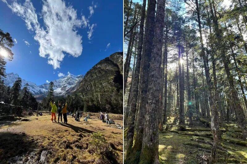 看到的日照金山,路上結識的小夥伴,穿過原始叢林,以及虎跳峽拍到的情侶。▼