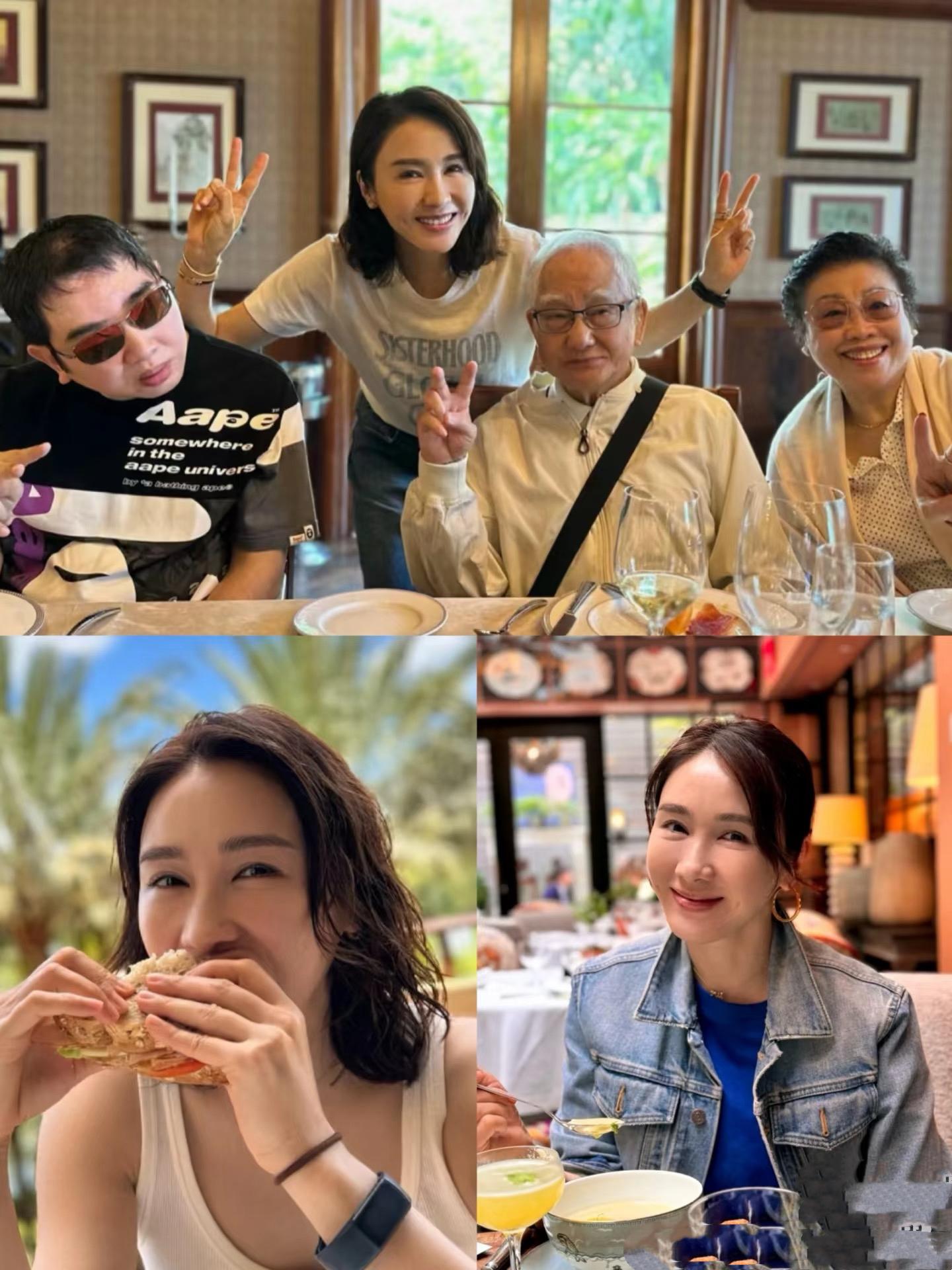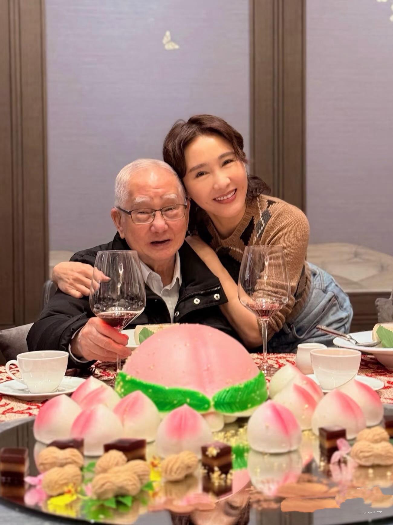 在父親88歲生日的時候,黎姿曬出一家人的合影。父親的頭髮都花白了,依然舉着紅酒杯,看起來精神不錯,這都要歸功於黎姿的照顧。