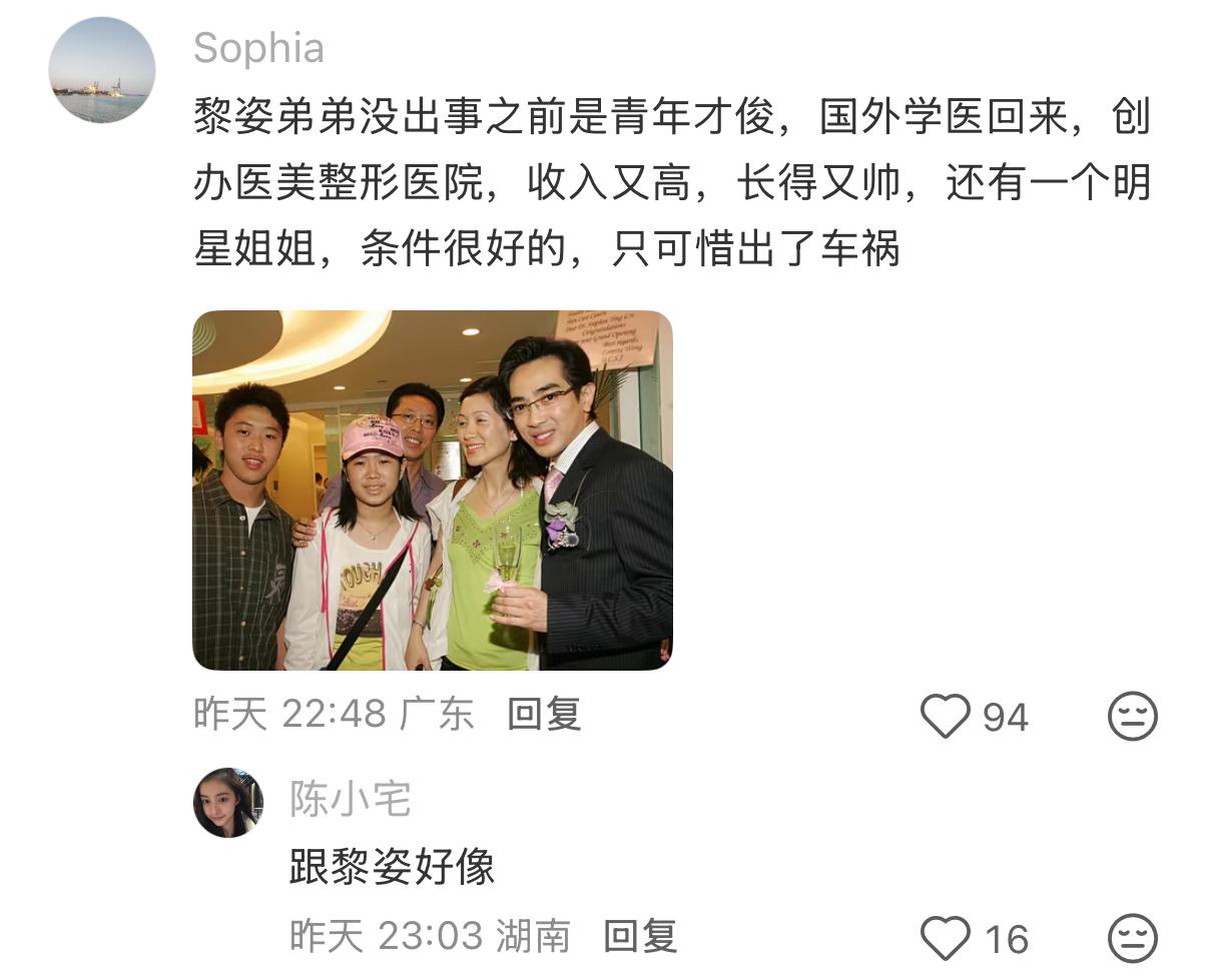 因爲有富豪老公的支持,所以在弟弟意外車禍後,黎姿選擇了息影安心照顧父母親人。其實黎姿原生家庭也不差,只不過是一種“先富後貧”的生活。