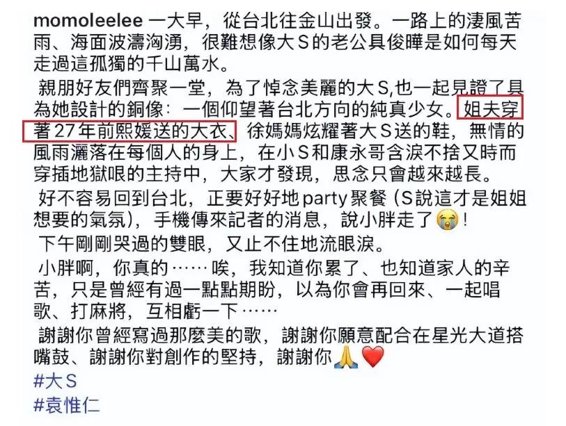 其實這件咖色大衣,是27年前大S送給他的。這件衣服一直被具俊曄保留着,27年了還和新的一樣,款式經典也不過時。具俊曄這一年瘦了那麼多,終於又可以穿得上了。